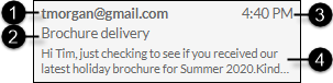 Clicking an incoming or outgoing email message item in the history displays the following details about the email in a separate panel.