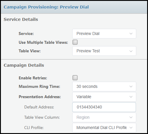 When setting up the campaign, you are able to specify a fixed presentation CLI, which is displayed to everyone who is called; or you can select a CLI profile.