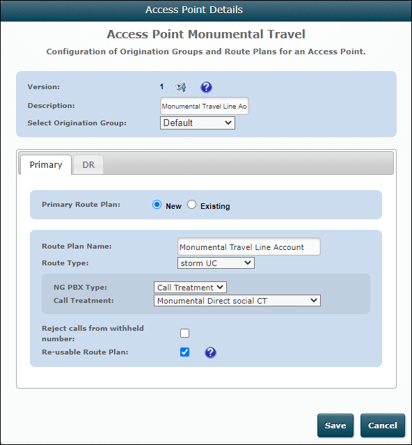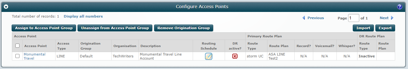 Once created, the LINE access point is available on the Configure Access Points screen, where you can assign route plans to them. These may be used to forward LINE messages to an agent group whose members can monitor messages and reply to them from the DTA.