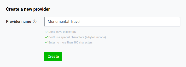 Note: a provider is the name of the company, client, brand or other entity that provides the apps you are working on.