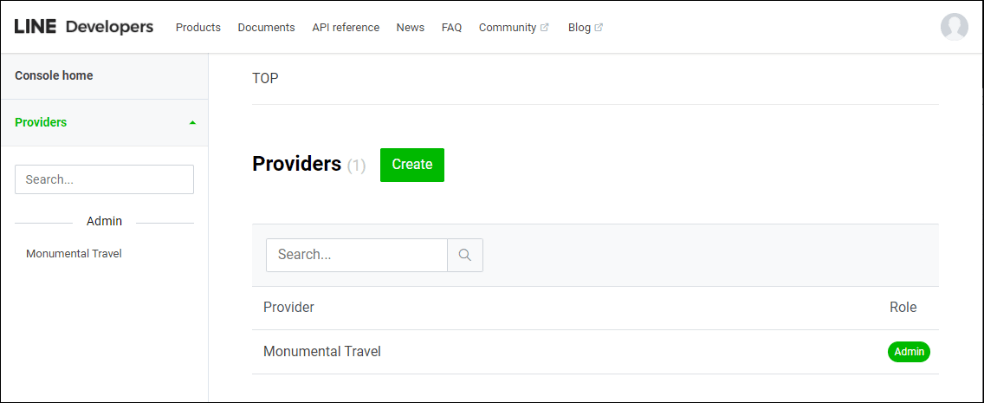 From within your LINE developer’s account, click on the provider that you want to add a Messaging API Channel to.