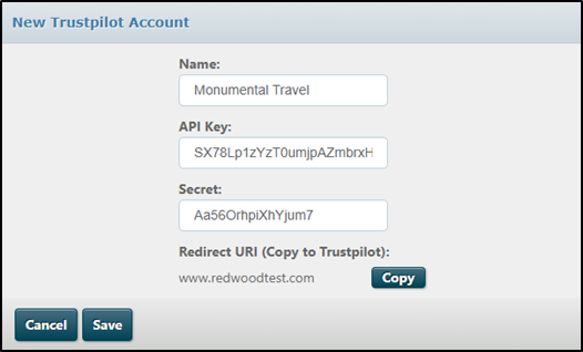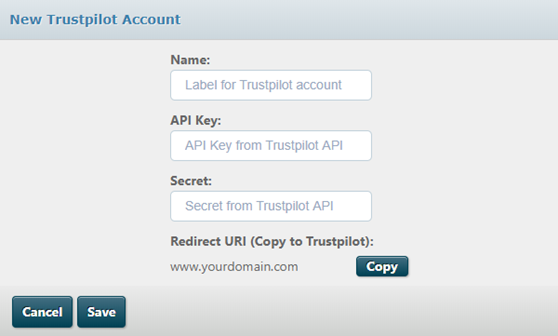 - Copy the Trustpilot setting into the storm Trustpilot account settings