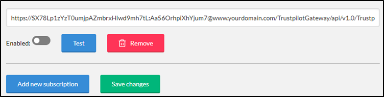 Once successfully authenticated, the Trustpilot Accounts page in STUDIO will be redisplayed along with a Webhook URL.