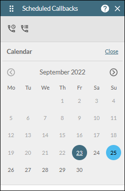 button on the Toolbar. This displays the Scheduled Callbacks Panel showing a calendar.