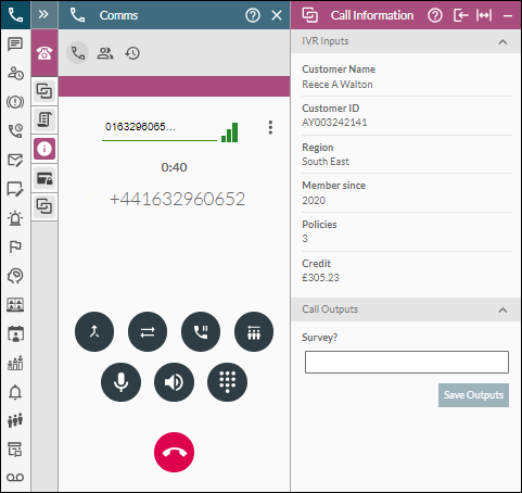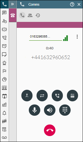In-call functions are available on the Comms Panel - Phone Tab.
