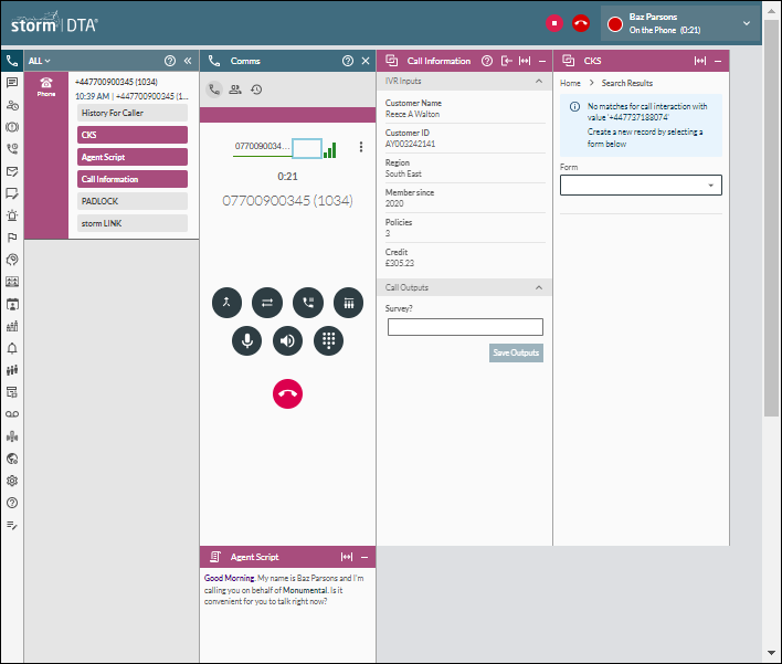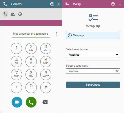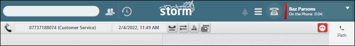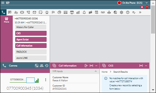 No call bar. Call information is displayed on the Interactions panel. In-call functions are provided on the new Comms panel in the workspace. |