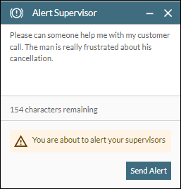 See also, View Broadcast Notifications, Broadcast a Message to Agents (supervisors only), and Respond to an Agent's Alert Message (supervisor's only).