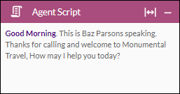 An Agent Script panel might be displayed with scripted text to help you with the call. You can toggle the display of the panel by clicking its