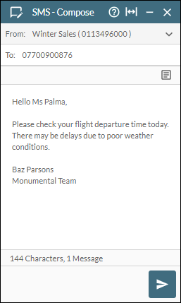 button on the Toolbar. This displays the SMS - Compose Panel.
