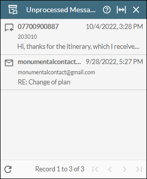 button on the Toolbar. This displays the Unprocessed Messages Panel.