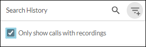button at the top of tab, select the Only show calls with recordings option, and then click the Apply Filters button at the bottom of the panel.