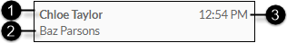 The originating number of the call, or 'Withheld Number'. For an incoming call that arrived through a storm treatment such as a queue or a hunt group, the name of the treatment is displayed in brackets. Clicking the |