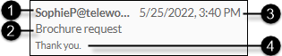 Clicking an incoming or outgoing email message item in the history displays the following details about the email in a separate panel.