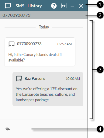 Displays a SMS Reply sub-panel at the bottom of the panel for you to reply to the sender.