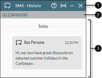 Clicking an SMS message item in the history displays the following details about the message in a separate panel.