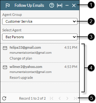 Use this panel to follow up on emails that have been marked for follow up by any agent in an agent group of which you are a member.