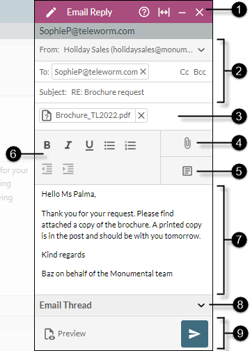 Note: your administrator may have configured your system so that the Email Reply Panel opens automatically along with prepopulated reply details in relation to the incoming message.