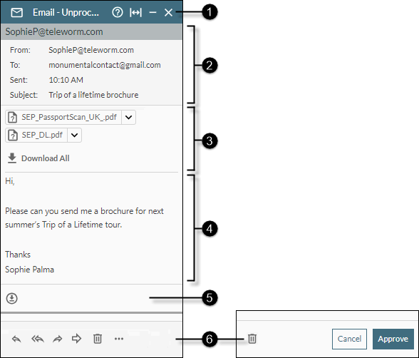 This is accessed by clicking an unprocessed email in the Unprocessed Messages Panel.