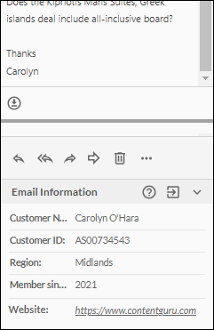 Some incoming emails may display information relating to the email such as the customer's details based on information gathered from a database.