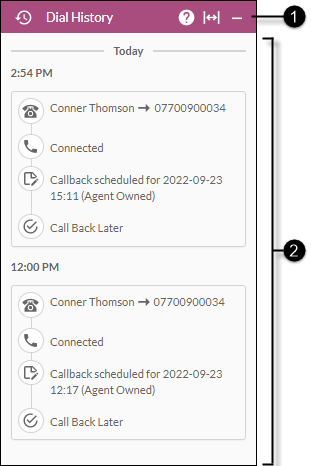This displays a dial history for the contact you are speaking to if they have previously been handled by an agent in the OUTBOUND campaign.