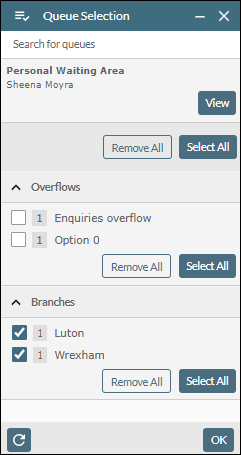 The number next to a queue indicates the number of operators who are currently monitoring it.
