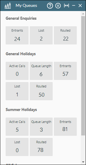 When there is not enough vertical space in the panel to display all of your queue statistics at once, an animation function plays to show you all statistics without requiring you to scroll through the list manually.