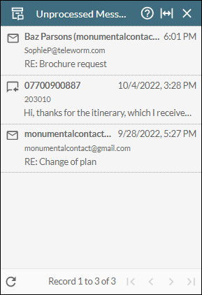 button on the Toolbar. This displays the Unprocessed Messages Panel.